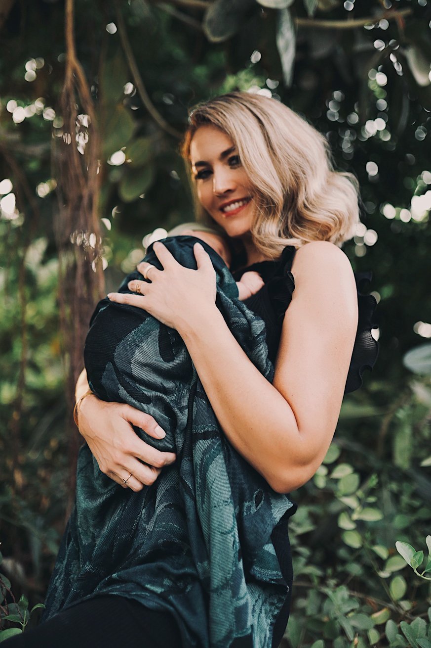 Dieser wunderschön anschmiegsame Schmusetraum begleitet dein Baby sanft beim Einschlafen und ist auch ein stylisches Modeaccessoire für dich.