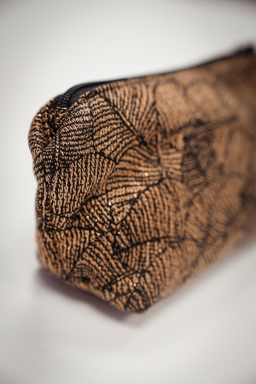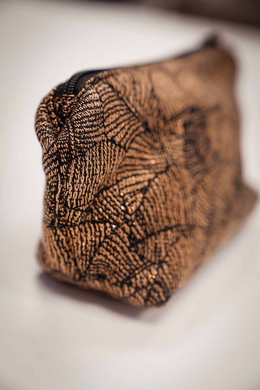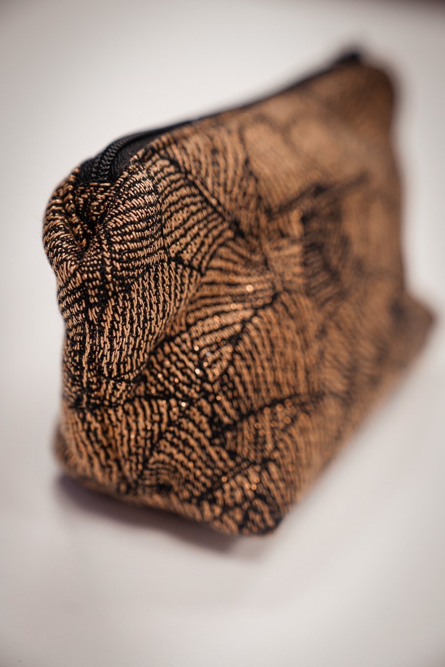 Die KOKADI Kosmetiktasche - natürlich aus Tragetuchstoff. Bezaubernde Federn, auf einem magischen goldenen Hintergrund. Unser Leaves Lynne Design zieht wirklich jeden in seinen Bann.